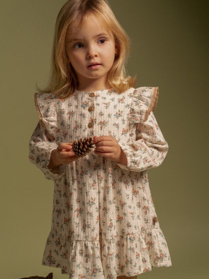 Сукня з потрійного мусліну 100% органічної бавовни з ексклюзивним квітковим принтом.